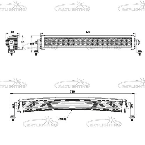 • Lengte: 719 mm  Hoogte: 119 mm  Diep: 93 mm